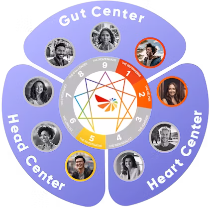 The 125 TriCenter, also known as The Guide, is composed of three Enneagram Types and uniquely integrates all three intelligence centers, creating a powerful synergy: